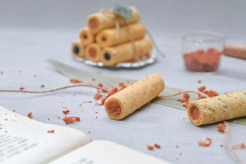 海苔肉鬆蛋捲的餅皮加入日本進口海苔粉、內餡是黃金豬後腿肉鬆,一層一層酥鬆鹹香的口感在嘴中,比原味肉鬆更多了淡淡海苔香氣,更有風味。
