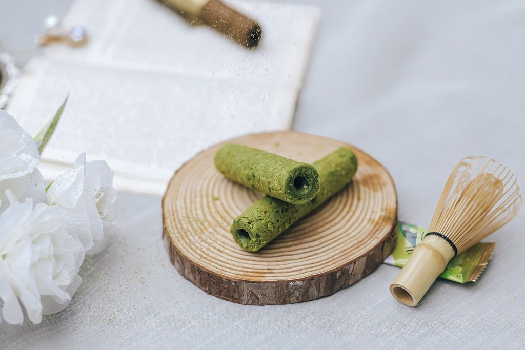 側面就可以看到每根蛋捲都非常厚實,陣陣茶香瀰漫於空氣之中,似聞了一壺剛泡好的茶,耐人尋味,如入林中亦或是山巒疊翠的一抹幽綠那樣清新。