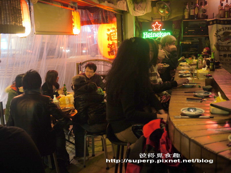 店非常的小,但還是保有著日式居酒屋的FU。生意極好,這天平日晚上,但完全客滿,還有一些人在等候補,好險我們有訂位。