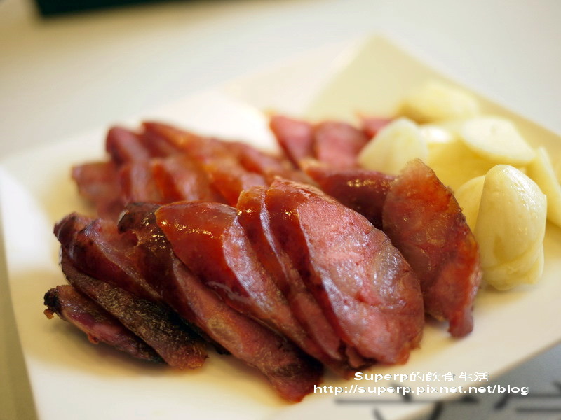 香腸(據說也是招牌菜之一,不過我吃不太出來哪裡特別之處。吃過泉州街的黃家現烤香腸之後,總覺得其他間的香腸口感都不夠有彈性)