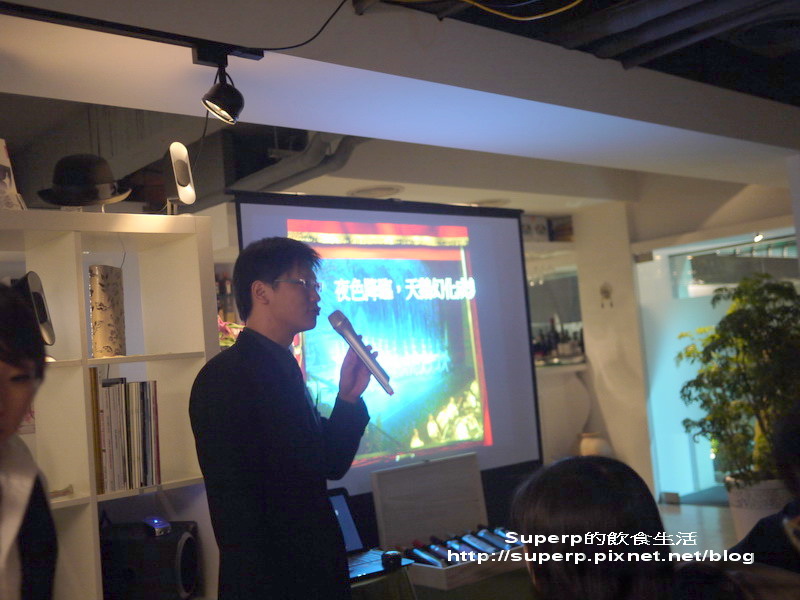 這次的品酒會也是客滿,應該有30幾個人。老闆Eddi在銀幕前解釋為何要用黑天鵝這個主題辦餐酒會,而且還放了許多天鵝湖相關的影片。