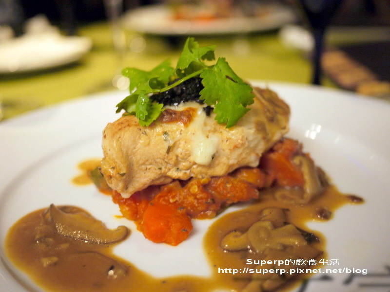 義式透抽卷佐番茄沙司佐Dr.LossenRiesling路森博士 雷斯玲 白酒(透抽裡面塞著牛肉以及海鮮和麵包粉做的餡,非常好吃,大推!Riesling這款酒單喝我覺得後勁給人悶悶的感覺,但吃了透抽卷後再喝,瞬間很神奇的好喝了起來,完全體會到紅酒漫畫裡面所說的食物跟酒有Mariage的感覺!)
