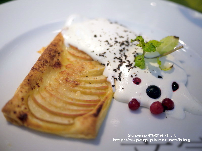 麗可塔起司醬蘋果酥皮派佐BLUMARINE Moscato布魯曼妮蜜斯嘉精釀甜白酒(這蘋果酥皮派相當的好吃。我朋友做過類似的甜點,應該只是在派皮上擺了蘋果片以及糖,然後塗一點蜂蜜下去烤。完全不甜膩,搭上起司醬更為柔和,好吃,推!這款白酒的蜂蜜香氣足,甜度頗高,是款很好的甜點酒)
