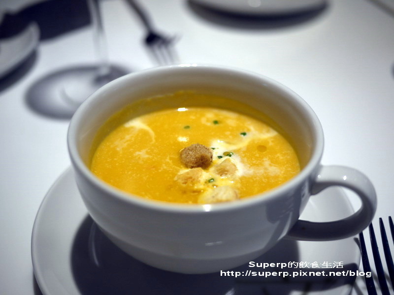 Albero在假日有提供假日套餐。消費方式是自選主菜加上$250,就能升級為套餐,多了一道前菜,湯,甜點,跟飲料。這天我們都選擇了升級變成套餐。