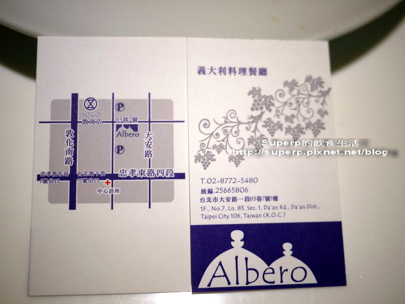 搜尋了一下,去年開的Albero似乎網路上的評價不錯,有些在台灣一般義大利比較少見的鄉村燉菜料理可以嘗鮮,就決定約這間了。