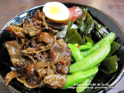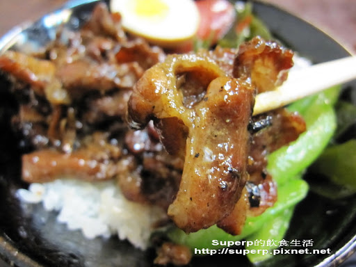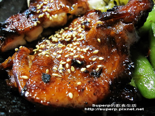 烤肉近拍(炭烤味很重,而基於肉片薄,太過於入味,所以整體來說太甜了,不合我胃口)