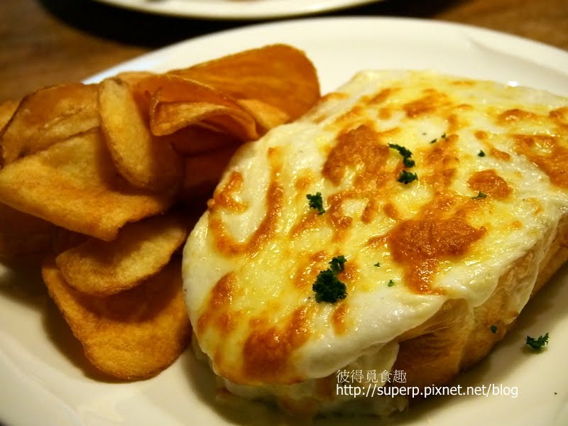 法國先生三明治$380(裡面是火雞肉火腿,外面淋了起司醬下去焗烤的。看起來很普通,但那個火雞肉火腿真的非常美味,柔嫩有彈性。整個加起來好吃,推!)