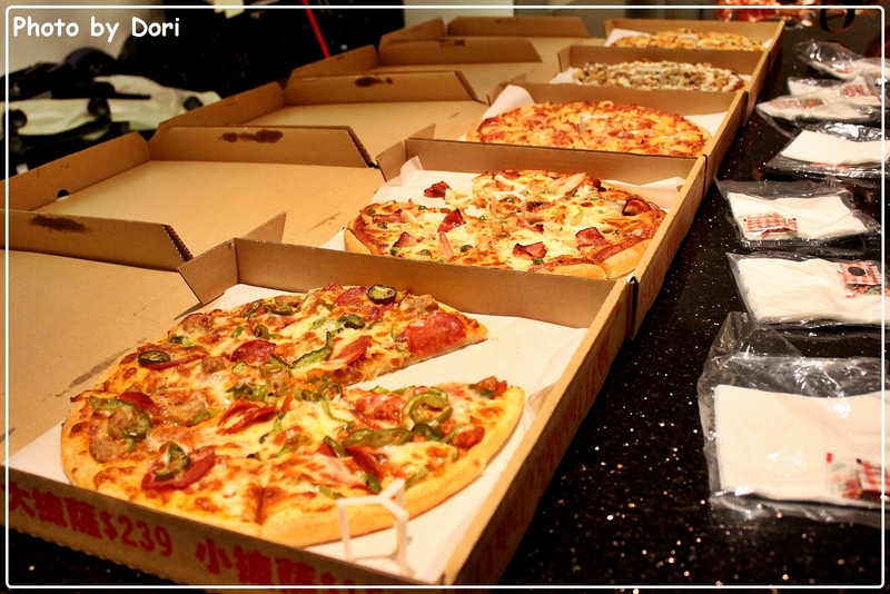 而且天空總部相當的貼心,還替大家準備了多種口味的必勝客PIZZA及飲料