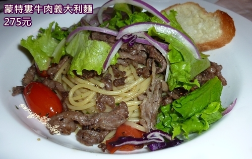 朋友點的是目前義麵坊最貴的一道麵-蒙特婁牛肉義大利麵,