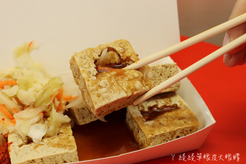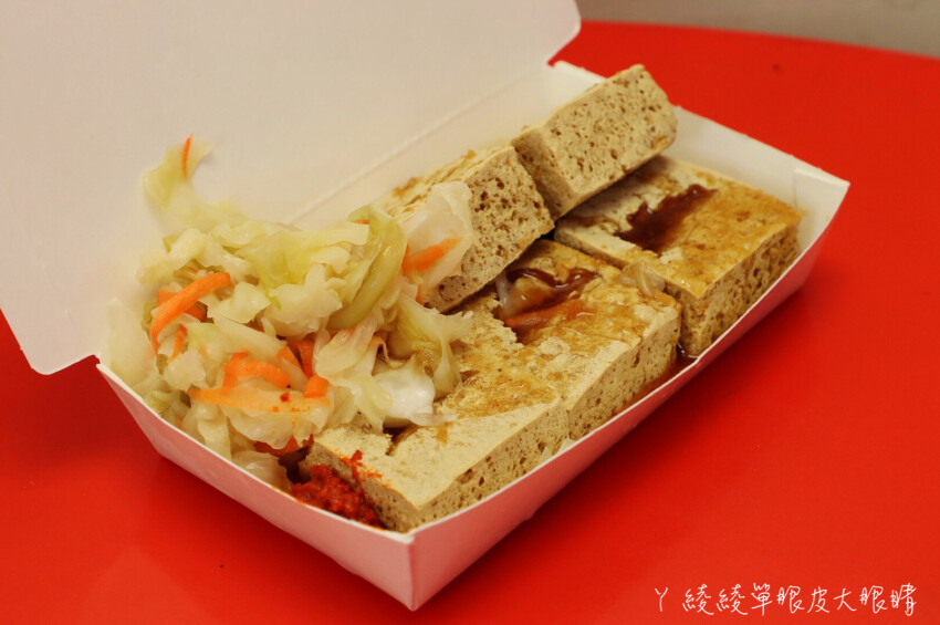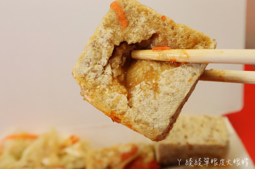 臭豆腐一份$55元總共有5大塊,外皮整個就是酥薄脆,咬下去會發出咔滋咔滋的聲音,但不是硬硬的那種喔!比較像是在吃雞蛋糕的外皮,口感很奇妙!至於臭豆腐的內裏口感十分柔嫩,雖然個人覺得這加臭豆腐涼掉也不錯吃,但仍然建議大家趁熱吃,口感非常不同!