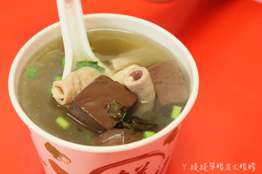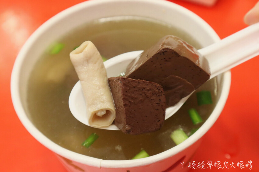 小腸豬血湯一碗$55元,配料看起來蠻多的,雖然到處都有賣小腸豬血湯,可是這家湯頭不油膩、鹹淡適宜,一不注意就喝完一碗了~加上小腸也處理得很乾淨,口感也很軟Q!