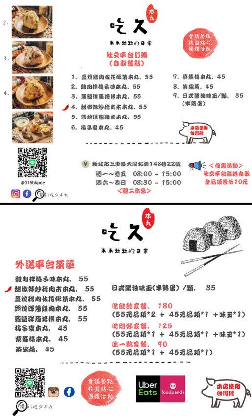 - 三重 文青風三角飯糰-吃久本丸-日式飯糰-可外帶、外送-附菜單