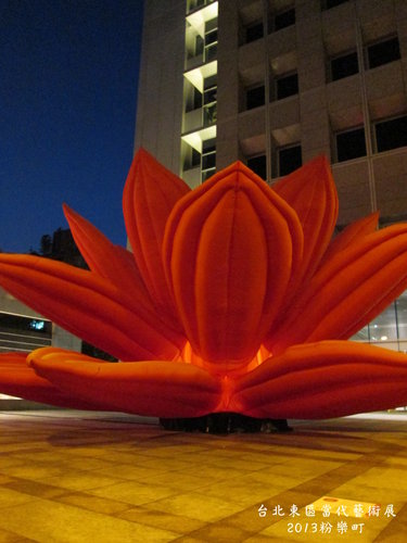 長久以來蓮花一直是重要的亞洲文化象徵,崔正化這朵尺寸超乎想像的蓮盛開於台北市中心,由合成材料而成形如真,又因機械開闔而栩栩如生,自然與人造的對比好似突兀,但為了藝術在生活中的驚喜,又有何不可呢