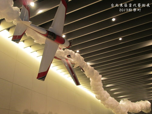 在「造飛機」系列作品中,充滿速度感的瞬間被凝結,寫實的造型卻描繪出超現實的場景,將每個小男孩都曾有過的漫天幻想轉換為創作靈感,順著展示空間讓噴射機尾煙恣意流動,觀眾在驚嘆之餘,也不禁回憶起那段想像力就是全世界的童年時光