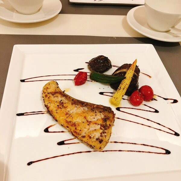 主菜(香煎鱘龍魚排佐陳年烏醋)