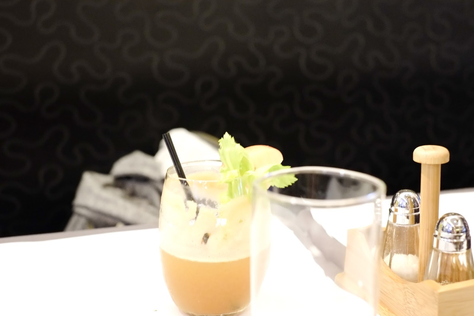 蔬果汁是西洋芹加蘋果跟一點點柳橙汁組成