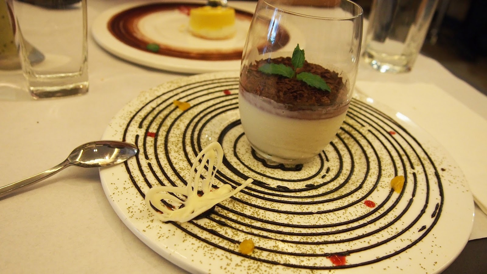 甜點一上來就讓人說好漂亮,師傅很費心的在盤子上搞花樣,看這兩盤就知道了,意圖使人把盤子舔個乾淨!!