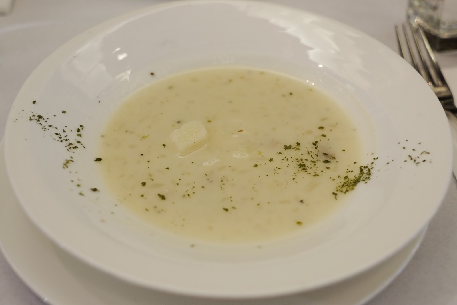 今天的湯是巧達濃湯,有大塊的馬鈴薯跟培根,喝起來味道很足,有開胃的效果,馬鈴薯也是鬆軟綿密。