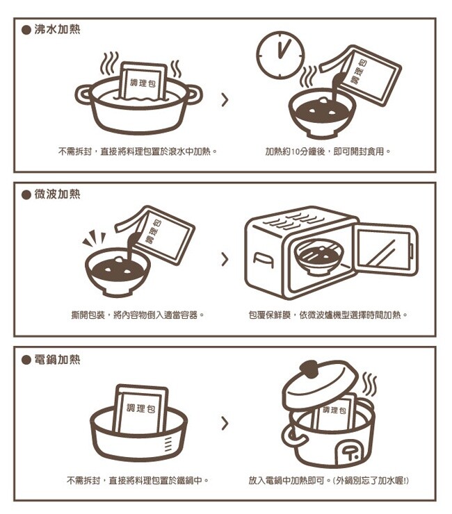 輕鬆照標示就能用不同方式加熱即食享用