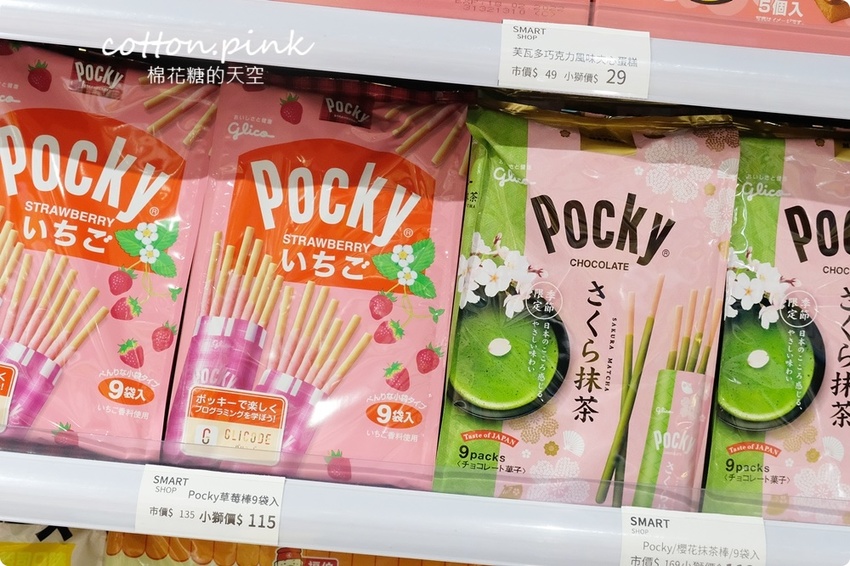 限量的草莓巧克力派還會爆漿的喔!現場賣完就只能等明年,POCKY巧克力棒還有季節限定的櫻花抹茶口味,光是看包裝就超美的~美味程度也是一等一!