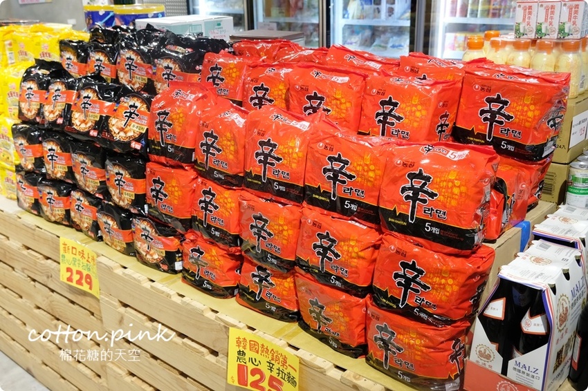 辛拉麵系列也是很受歡迎,今年直接給他專區一區堆成小山,這個不只韓國熱銷第一~應該也可以說是台灣大家最喜歡的韓國泡麵品牌啦!竟然連韓式餐廳才看得到的韓國冬粉也有賣~這和台灣冬粉不一樣,口感更Q~煮火鍋也很合適唷!