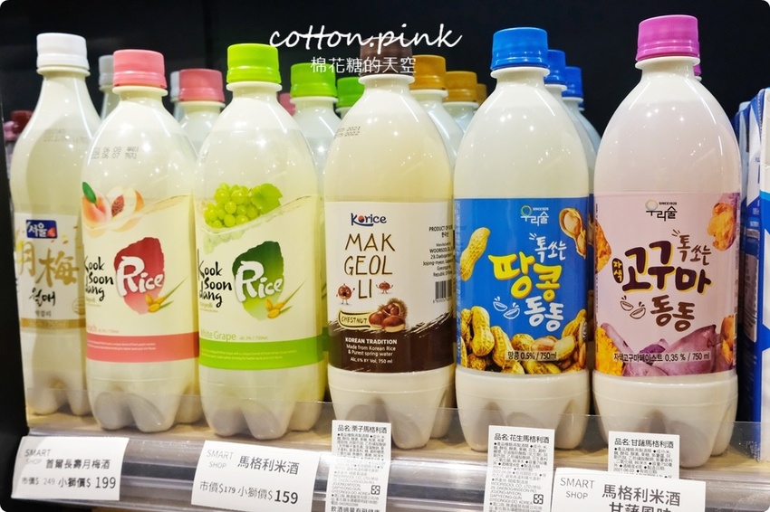 大玻璃罐的百威啤酒這一波也是很划算,很多人都直接拿一手的!這都是一般在餐廳才看得到的大包裝喔!韓國來的馬格莉米酒~超多口味,冰在冰箱甜甜的很順口,賣的最好的竟然是栗子、花生、地瓜這些特殊的口味,怎麼能不試試~