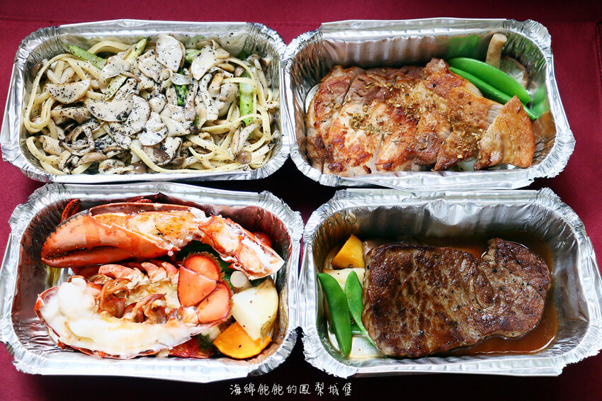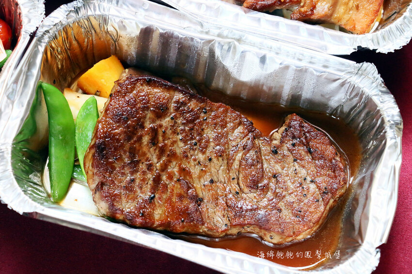 打開餐盒,牛排跟龍蝦的香氣撲鼻~