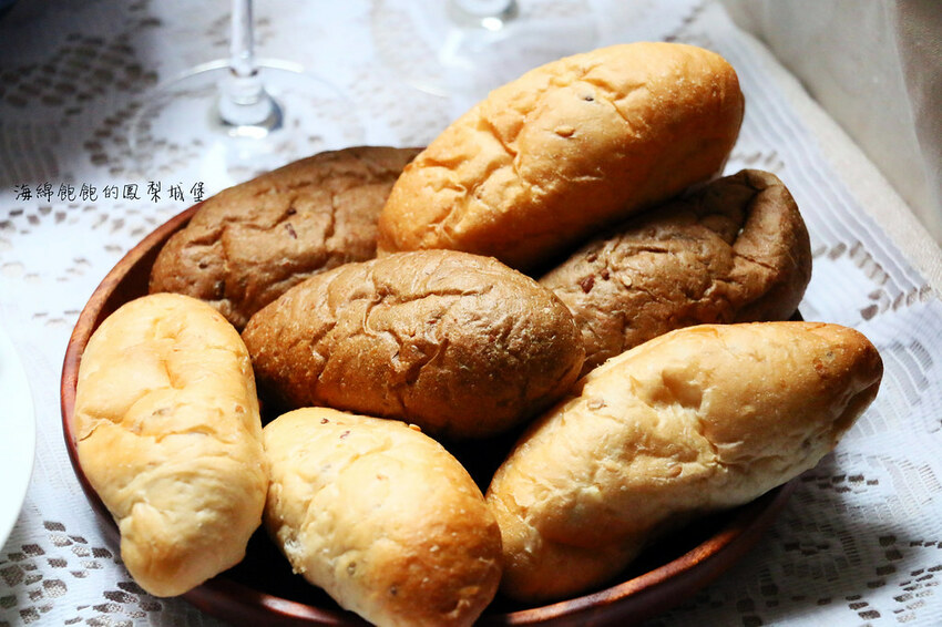 麵包有兩款,歐式雜糧裸麥麵包及葵花籽橙皮麵包
