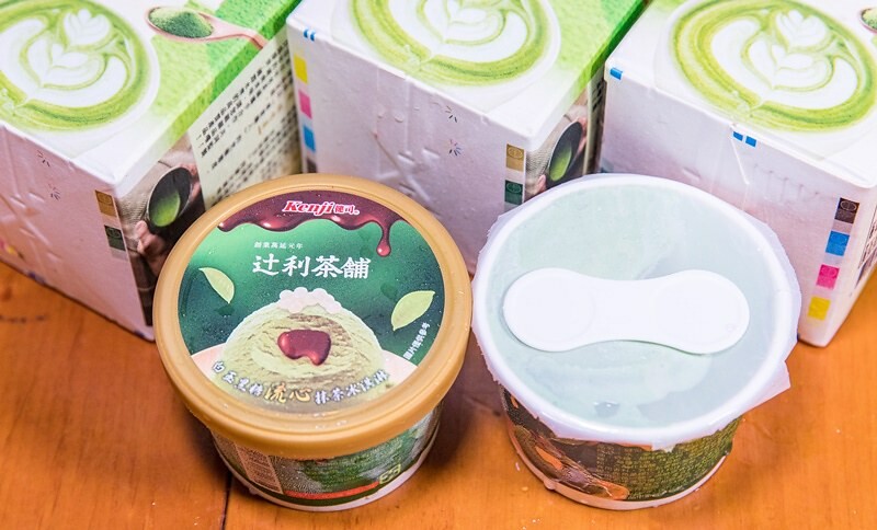 流心冰淇淋一共有「白玉黑糖」、「紅豆煉乳」兩種口味,使用日本進口辻利茶舖抹茶粉,包裝也很有日式fu,價格卻相當便宜,要知道這類日式進口的抹茶冰淇淋,那可是隨便一小盒都要買到100+以上....。健司 X 辻利這兩款流心抹茶冰淇淋,卻能以銅板價品嚐到日本抹茶同等級的冰品滋味,還不買爆、吃爆它。