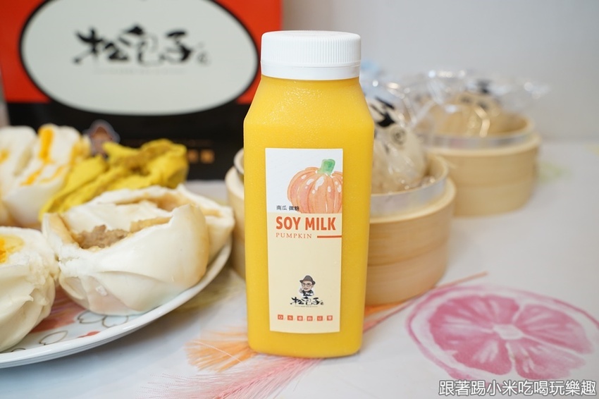 南瓜豆漿(60元),想喝不一樣口味豆漿的朋友也可以試看看,有豆香的濃郁的滑順口感,卻有南瓜的甜味湧現,微糖的甜度也適中不會甜膩,這個小米蠻推薦搭著包子來吃的唷!
