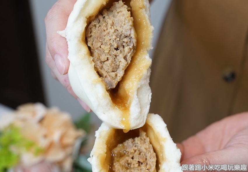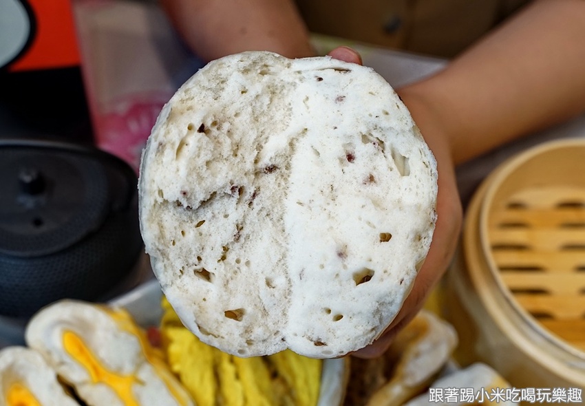 懷舊香芋包(35元),這個也是讓小米有訝異的感覺XD 有別於常見的甜芋頭口味的包子,裡面有滿滿的大甲芋頭絲跟紅蔥頭用黑毛豬的豬油一起爆炒。