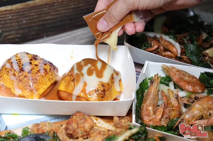 炙燒起司雙醬饅頭,其實就是一般常見的炸銀絲卷升級版,將饅頭炸過後再放上起司片,炙燒讓起司整個融入饅頭內,接著會讓我們自己挑選醬汁,分別有煉乳、太妃糖、巧克力醬可挑選兩種自己淋醬,我們選的是煉乳及太妃糖,真心建議可以兩種醬汁同時淋上,口感更香濃~