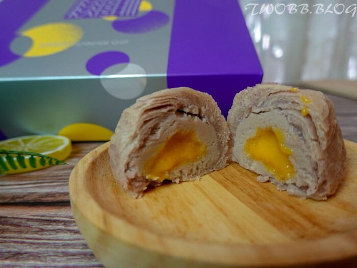 流心有三種口味,以萬丹九號紅豆製作的豆沙口味「相思流心」、荷蘭皇家的無水奶油製作的「奶黃流心」、大甲檳榔心芋頭製作的「芋見流心」。因為內餡相當綿密,冰冰的吃起來猶如冰淇淋一般。稍微微波或是烤箱加熱吃,內餡與流沙更細膩滑口,我個人偏愛熱熱的吃!