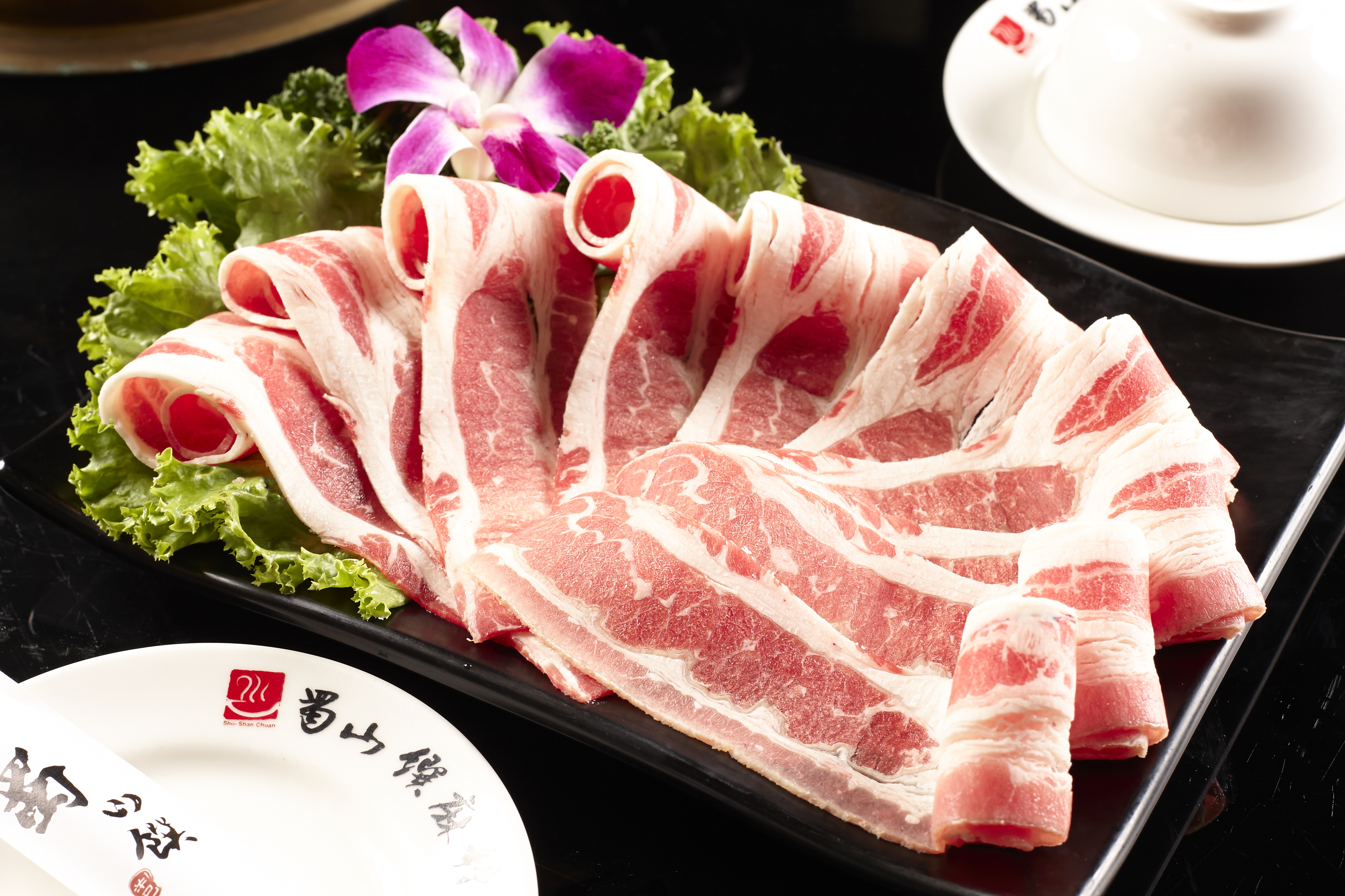 火鍋豬肉片肉質軟嫩順口、油花分布均勻,另外提供各式精選肉品,雞豬牛羊可供客人自由選擇,輕涮後佐以些許調味,即能吃出食材本身的原味。