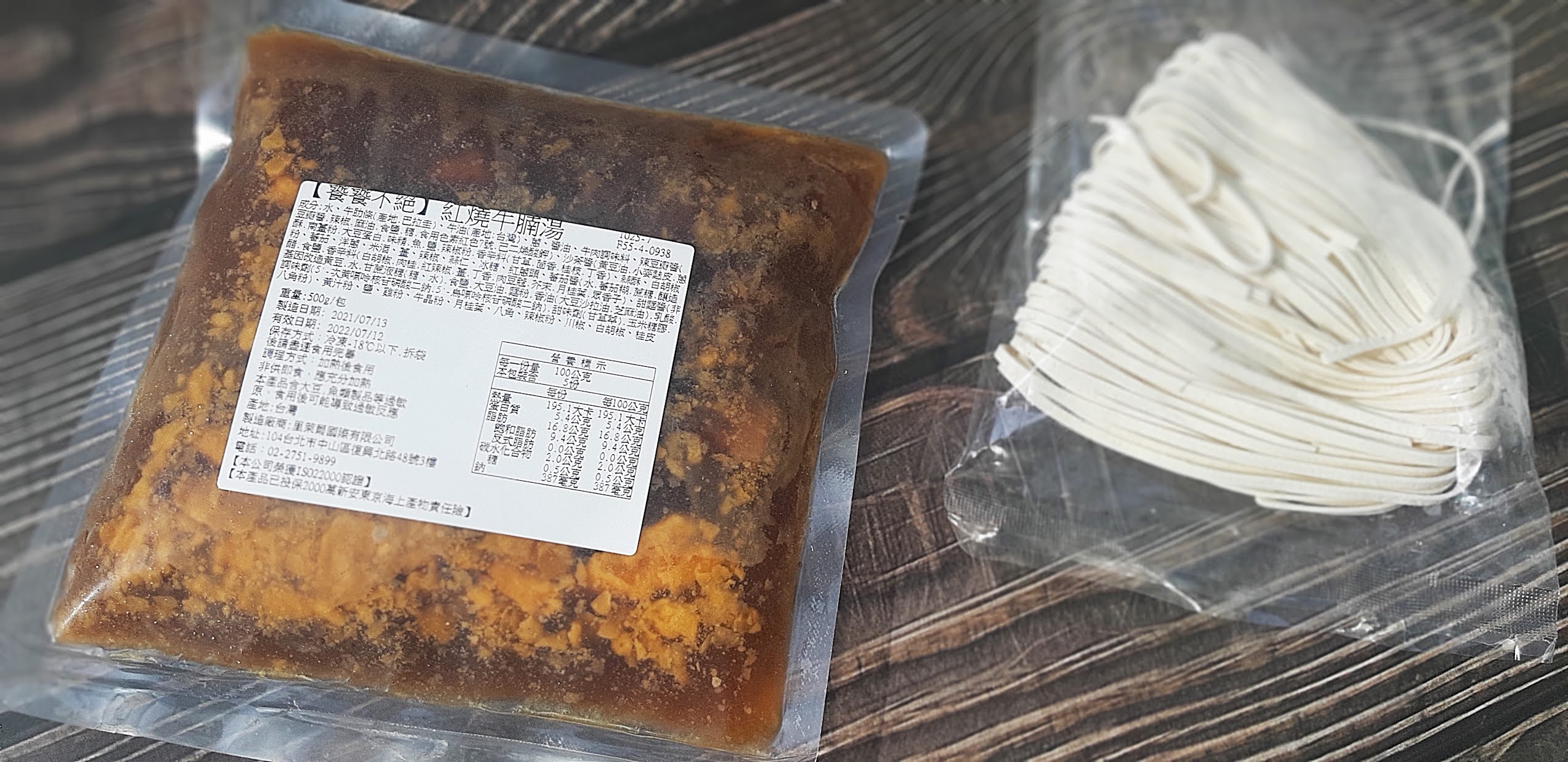 饕饕不絕真空包裝紅燒牛腩湯,只要加熱,加上煮好關廟麵,就是一碗色香味具備紅燒牛腩麵。