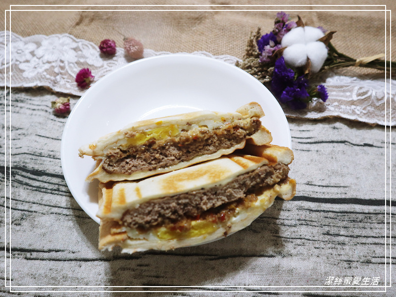 採用澳洲牛肉,加了切達起司和德式起司片兩種不同風味的起司,還有使用洋蔥/甜椒/洋菇等特製的蔬菜炒配料,以及搭配上特調的酸黃瓜沙拉醬,一口咬下好多汁😋😋,牛肉味鮮明豐厚,肉排用料實在,還有一顆蛋……吃完一份就飽了😂😂,這不能當點心,根本是正餐等級XD。