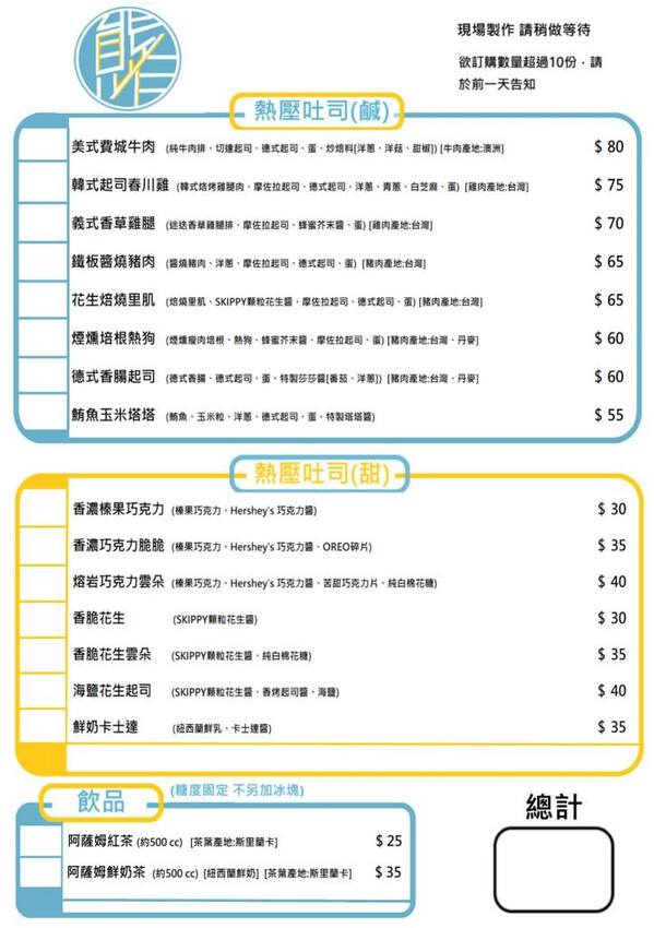 點餐後才會開始製作,保證吃到的都是現做熱呼呼吐司,所以請耐心等待唷~