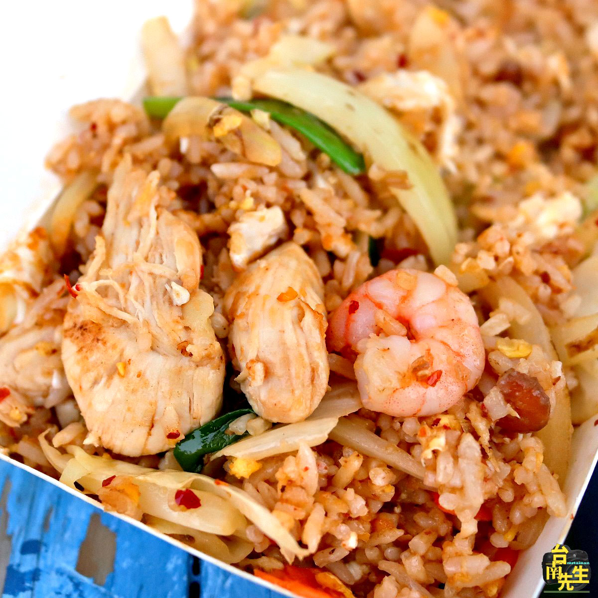 南洋炒飯炒得相當乾爽粒粒分明,加入獨家醬汁及雞肉、蝦、洋蔥、紅蘿蔔、高麗菜、青蔥等食材拌炒,吃起來鹹中帶甜,真的會忍不住一口接一口