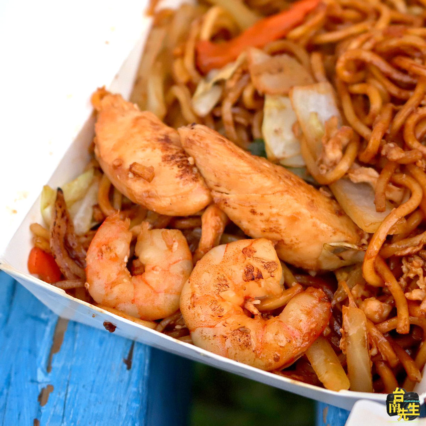 福建炒麵用的是細麵,加入獨家醬汁、雞肉、蝦、洋蔥、紅蘿蔔、高麗菜、青蔥等食材大火快炒,麵條Q彈有嚼勁不易軟爛,吸附滿滿醬汁,鹹香夠味越吃越涮嘴。雖然說我對福建炒麵的食材印象中應該是要有豬肉片跟花枝(中卷),不過以這價位來說還算OK啦