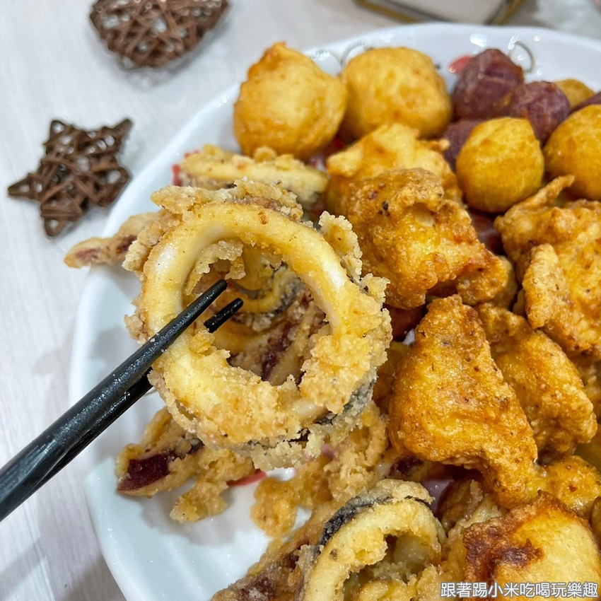 魷魚圈60元也是小米很推必點的!魷魚圈炸的火候嘟嘟好,有軟Q鮮甜又彈牙的口感,加上酥酥的外皮會讓人忍不住一口接一口吃