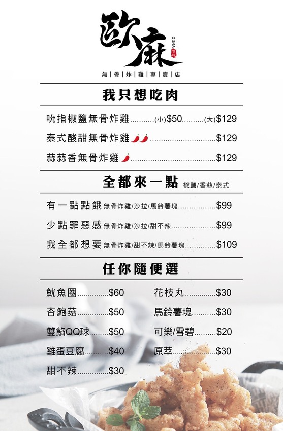 👉歐麻無骨炸雞鹽酥雞菜單目錄搶先看
