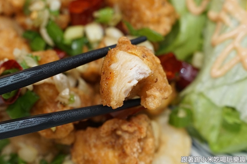 鹹酥雞是使用當天溫體無骨雞胸肉為食材,口感上特別軟嫩又多汁