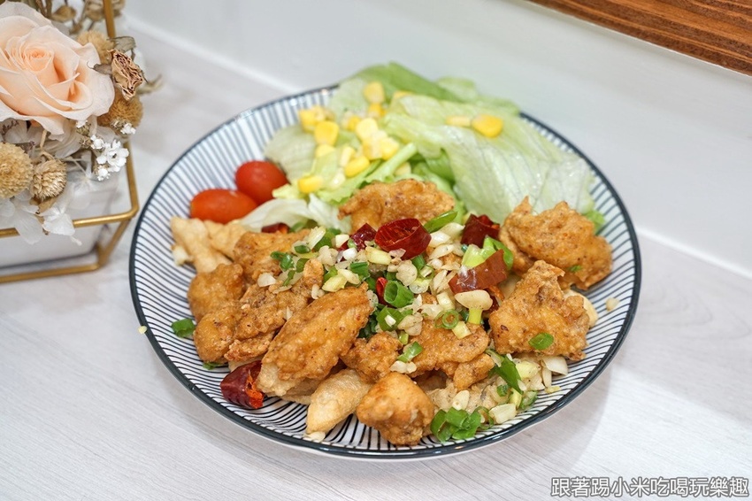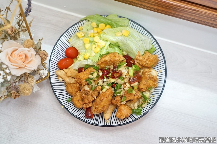 特別的是有像避風塘的鹹酥雞讓小米為之驚艷,有蔥香、蒜香及辣香跟無骨鹹酥雞來搭配,有多層次的美味享受又下酒