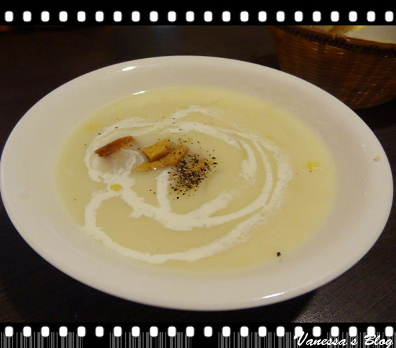 店家速度還蠻快的,濃湯熱騰騰的上桌,味道算尚可,但搭配麵包超對味的喔!