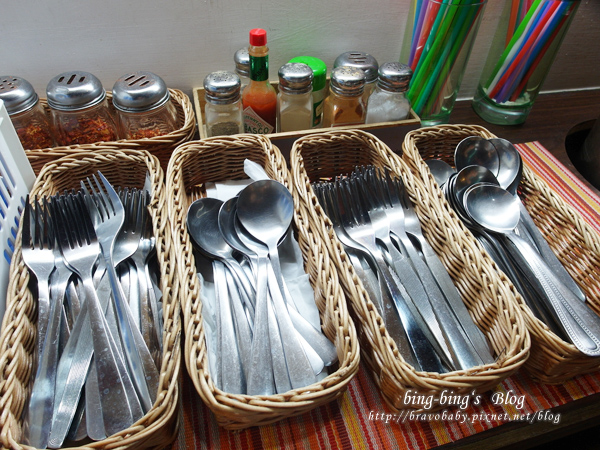 這邊是採半自助式的,所以不會收你一成的服務費,餐具當然也就需要自己去取用