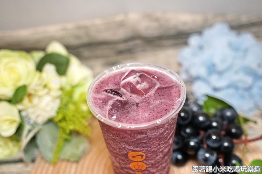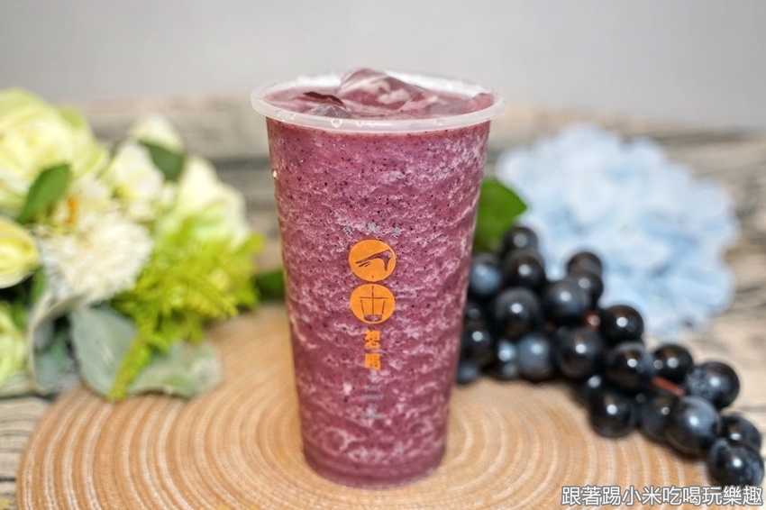 巨峰葡萄汁(75元)(半糖),喜歡葡萄香甜的朋友可以來選這一杯了,整顆葡萄含籽一起打,有葡萄的濃郁香氣又有纖維感,消涼又解渴呢
