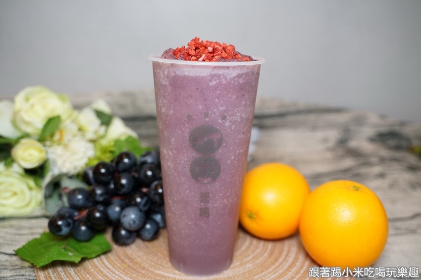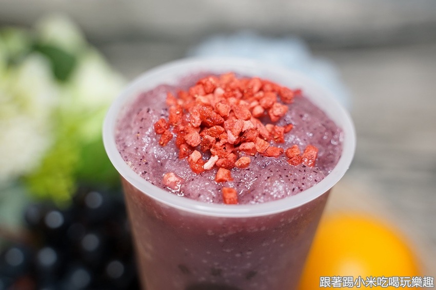 鮮紅的草莓果粒很吸晴,軟軟QQ的酸V跟葡萄與橙橙的清甜很搭,也是很適合女孩子來飲用唷。