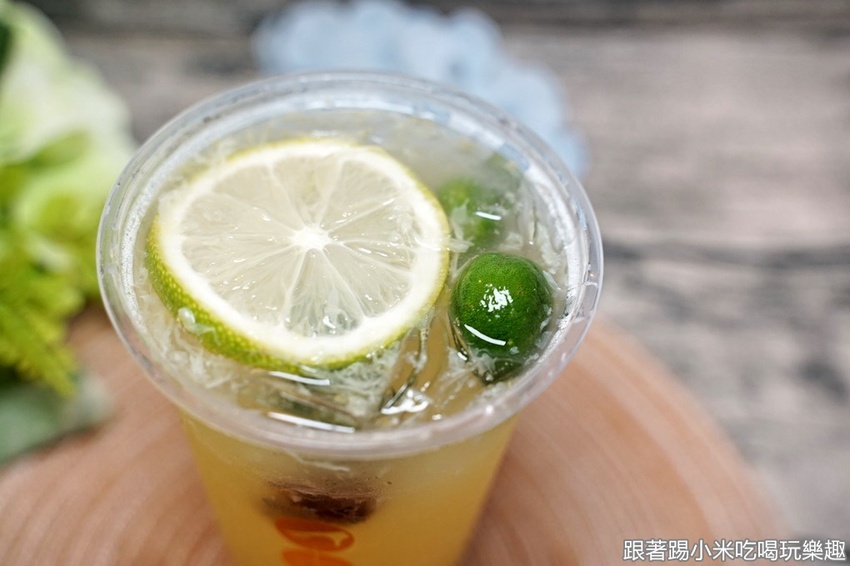 喜歡清爽的飲料可以選這杯金桔檸檬(60元)(半糖),不只放上新鮮金桔及檸檬,還有加入話梅,讓這個酸V清甜的飲料更為解膩~