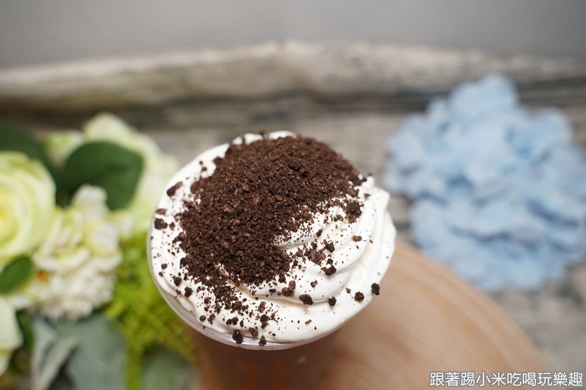 OREO冰鑚(7 0元),小朋友應該很喜歡的飲料XD 巧克力冰沙是很濃郁的甜香,還有奶油跟OREO的碎片加起來會很滿足啊。
