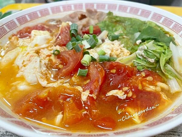搭配青菜和蔥花真是完美的紅綠配